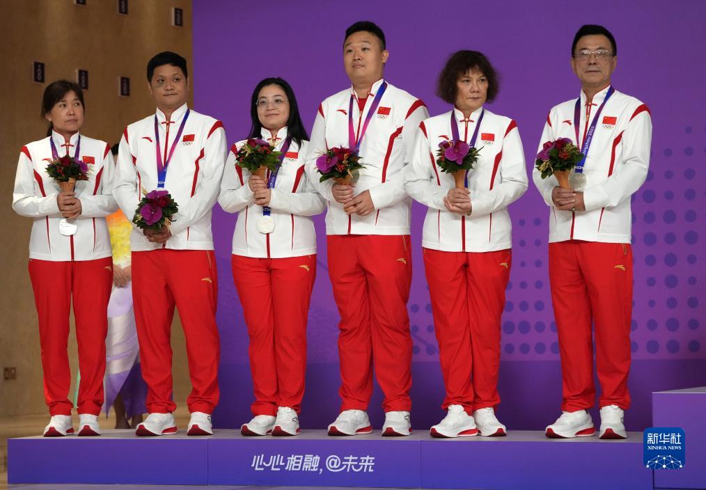 10月6日,獲得銀牌的中國(guó)隊(duì)在頒獎(jiǎng)儀式上。