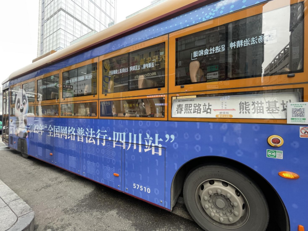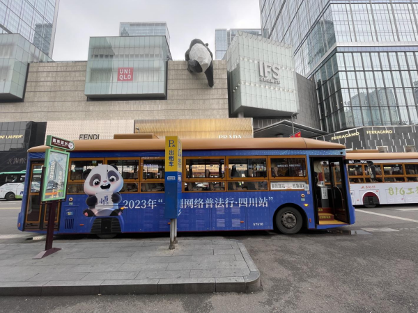 據介紹,未來一個月時間里,成都市民和來蓉游客都能在春熙路商圈的“網紅”地標“熊貓爬墻”下,看到網絡普法主題公交。該主題公交在成都著名的“熊貓觀光線”上運行,并往返于成都地標春熙路以及熱門景點熊貓基地,途經寬窄巷子、文殊院等人氣打卡地,公交車化身普法“宣傳員”,讓網絡普法宣傳融入城市交通、深入大街小巷、進入百姓心中。