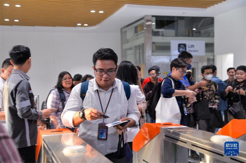 10月17日,在印度尼西亞萬(wàn)隆德卡魯爾站,乘客刷票出站。新華社記者 徐欽 攝