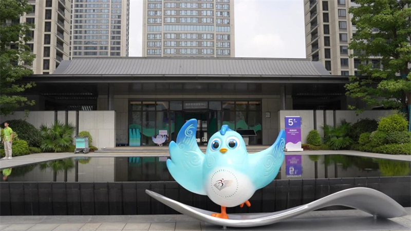 杭州亞殘運(yùn)村即將正式開村,經(jīng)過轉(zhuǎn)換期緊鑼密鼓的改造,“村”里不僅添加了許多助殘?jiān)O(shè)施,為運(yùn)動員和隨隊(duì)官員們營造了更加舒適便捷的生活環(huán)境,還換上了“新裝”,濃烈的亞殘運(yùn)會氛圍無處不在。亞殘運(yùn)會吉祥物飛飛“飛上枝頭”,成為亞殘運(yùn)村里最亮眼的“明星”。