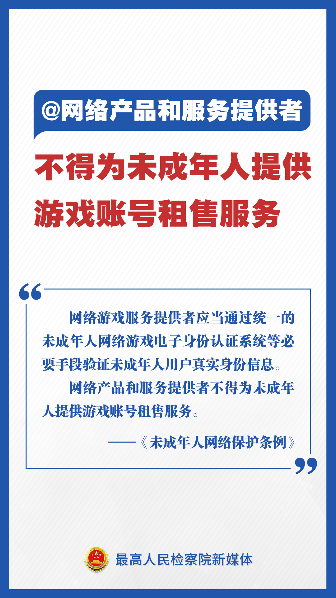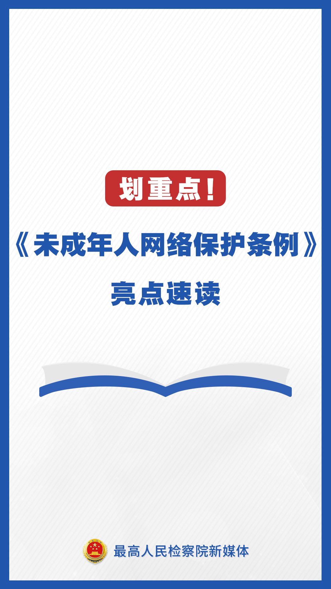《未成年人網(wǎng)絡(luò)保護(hù)條例》來了!檢察君為你劃重點(diǎn),速讀未成年人網(wǎng)絡(luò)保護(hù)新舉措!不得通過網(wǎng)絡(luò)對未成年人實(shí)施侮辱、誹謗等網(wǎng)絡(luò)欺凌行為;不得為未成年人提供游戲賬號租售服務(wù);建立網(wǎng)絡(luò)直播發(fā)布者真實(shí)身份信息動態(tài)核驗(yàn)機(jī)制……速速轉(zhuǎn)發(fā)擴(kuò)散!
