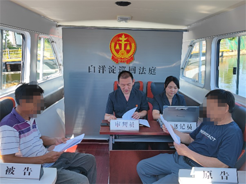 圖為審判員在“天平號(hào)”上開(kāi)展巡回審判。安新縣人民法院供圖