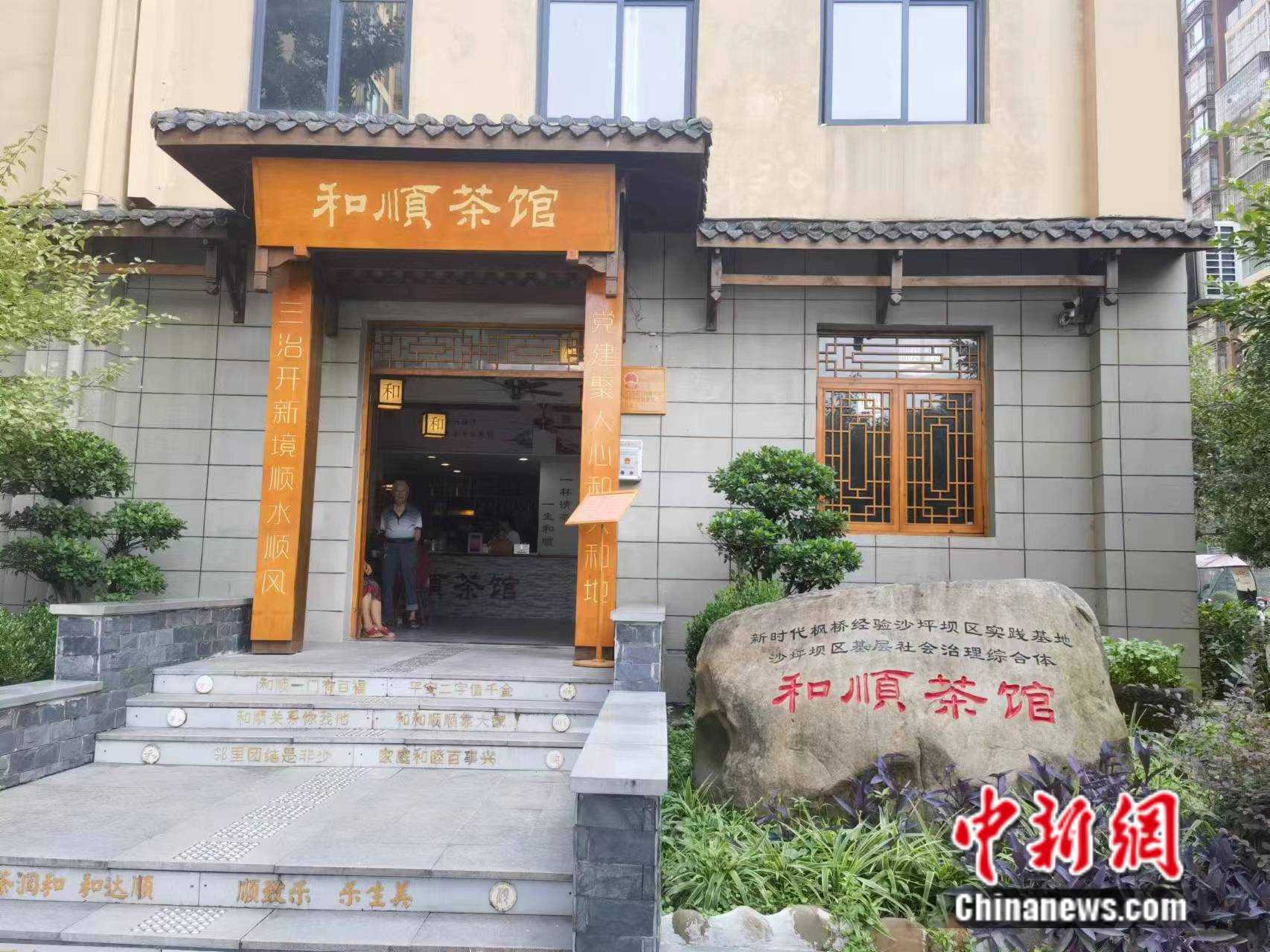 茶館在川渝地區(qū)是常見(jiàn)的休閑去處,在重慶市沙坪壩區(qū)回龍壩鎮(zhèn)聚龍城社區(qū),一間非民辦“和順茶館”成為當(dāng)?shù)乩习傩盏拿咳沾蚩ǖ兀撼撕炔枇奶?,茶館還融合了各職能部門(mén)下沉社區(qū)的十幾個(gè)辦公室功能。政策宣講、糾紛調(diào)解、法律咨詢……一杯清茶間,社區(qū)里那些難辦、急辦的事總能得到妥善解決。