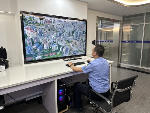 涪陵區(qū)公安局警航飛控中心開展全區(qū)三維圖像建模,助力推進警用地理基礎信息三維影像化。人民政協(xié)網(wǎng)記者王慧文 攝