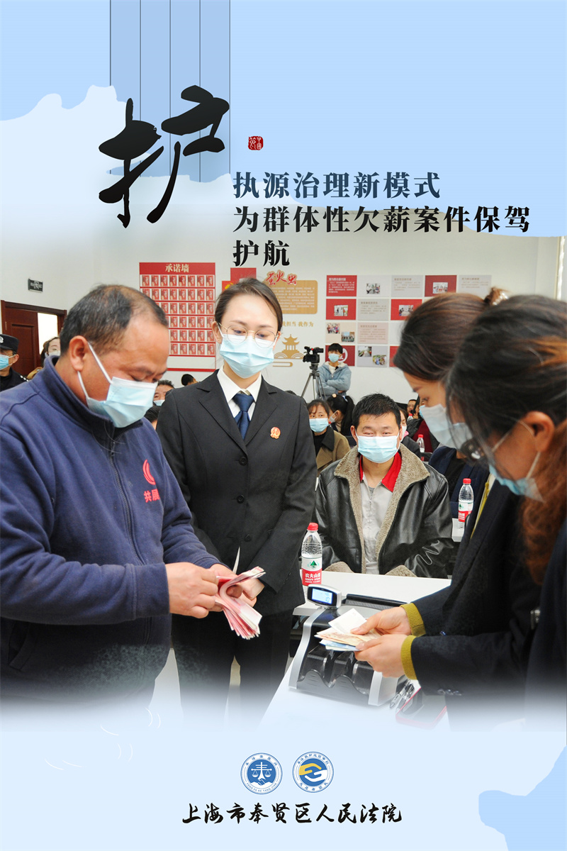 在“客堂間里護民生——奉賢法院工資發(fā)放活動”上,工人老徐終于拿到了自己半年多的工資。上海奉賢法院緊緊依靠地方黨委、緊緊依靠屬地政府、緊緊依靠當事人理解與支持,探索形成了“黨委領(lǐng)導、多方支持、分工協(xié)作、形成合力”的執(zhí)源治理新模式,使得這批涉130余名工人、總金額達510余萬元的群體性欠薪糾紛得以妥善解決。
