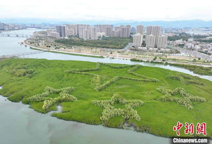 中新網(wǎng)廈門(mén)1月25日電(彭莉芳)退潮時(shí)分,在廈門(mén)市翔安區(qū)下潭尾紅樹(shù)林公園的灘涂上,一組由紅樹(shù)林勾勒的地標(biāo)景觀露出海面,郁郁蔥蔥,頗為壯觀。地標(biāo)景觀寓意“我愛(ài)中國(guó)”,紛至沓來(lái)的游客,在暮色中拍照“打卡”,偶爾驚起白鷺一片。