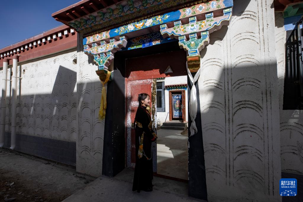 丹增在森布日生態(tài)搬遷安置點(diǎn)的新家門(mén)前(1月24日攝)。