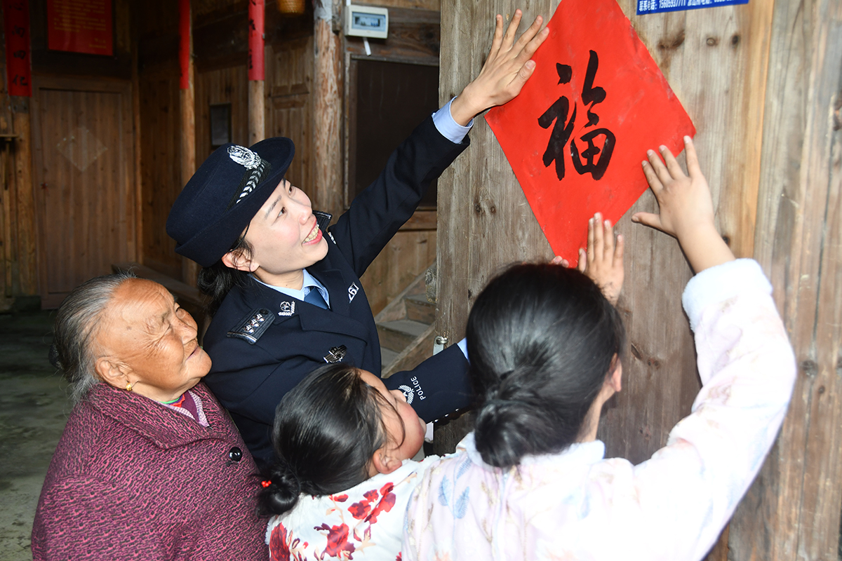 春節(jié)臨近,福建省壽寧縣公安局下黨派出所民警走進轄區(qū),為獨居老人送上生活物資,幫助他們與在外務(wù)工的親人接通視頻通話,并送上新春祝福。