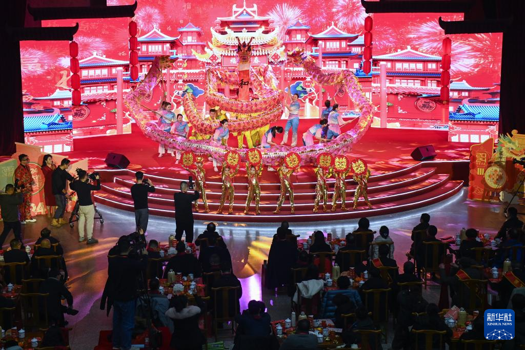 2月4日,來自湖州長興縣的農(nóng)民進行鴛鴦龍表演。