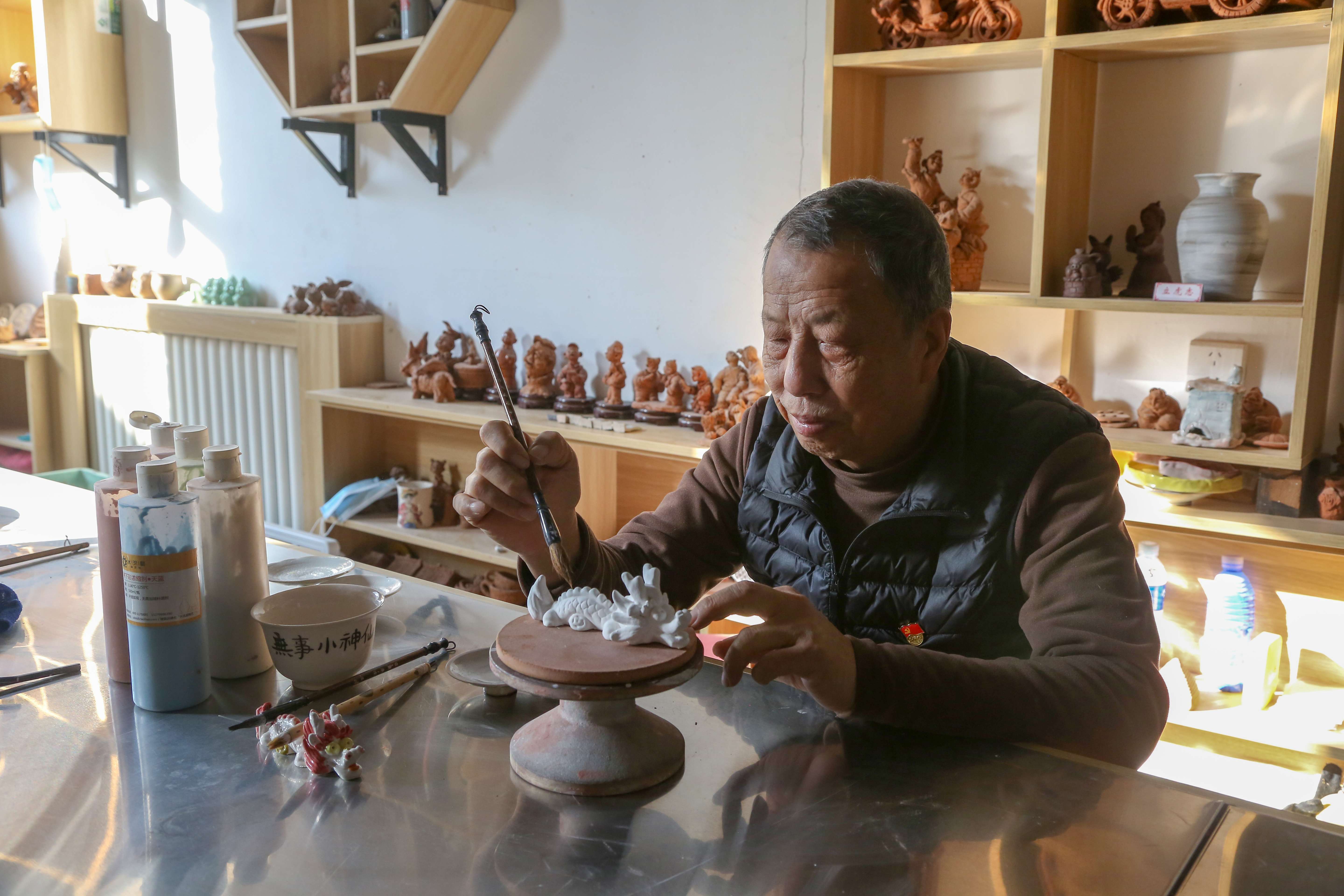 一抔泥土、一把刻刀,經(jīng)巧手捏制、刻畫、修整、彩繪、燒制等多道工序后,一個個活靈活現(xiàn)、寓意吉祥的泥塑作品便制作完成了。