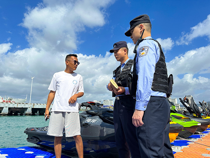 圖為三亞港海岸派出所聯合海事局和執(zhí)法局對海上娛樂項目開展聯合檢查