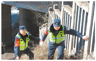 線路巡查完返程路上,路邊一輛電動三輪車側(cè)翻在道路左側(cè)土溝里,一側(cè)地上躺著一個人。徐鵬和民警韓壹朝立即下車救援幫助。原來陳大爺騎著電動三輪車回家,因道路結(jié)冰,不小心連人帶車側(cè)翻到一旁的土溝里。民警確認老人身體只受了點擦傷后,驅(qū)車將老人送回了家。