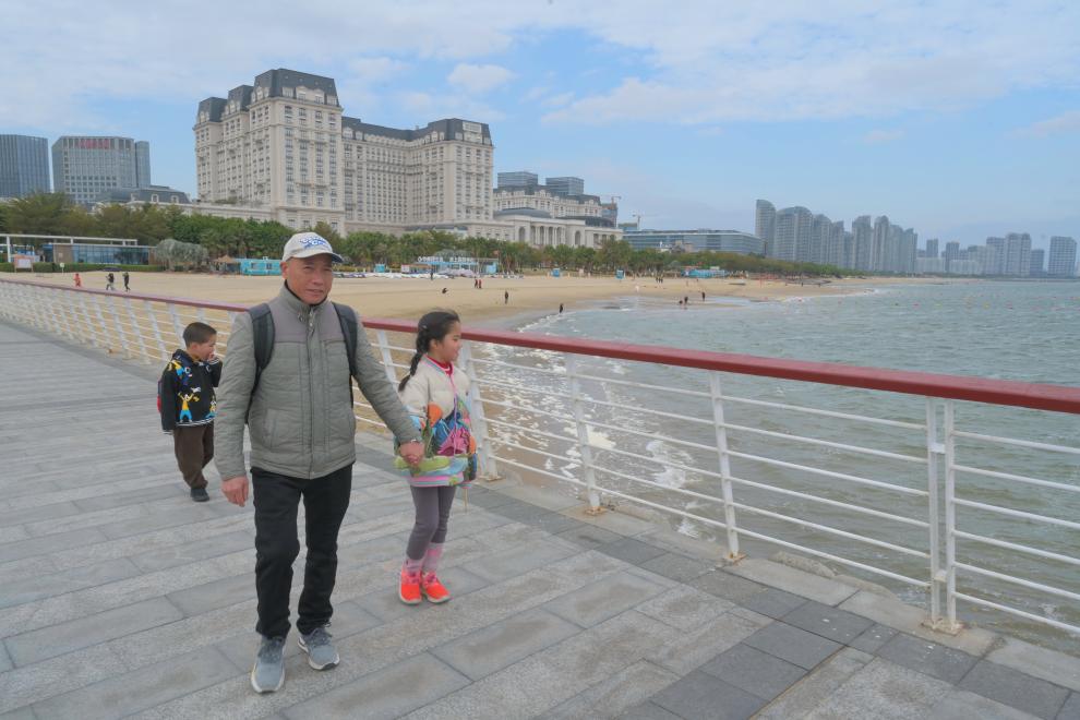 “感覺很棒!一邊是海景,一邊是園景?!眮碜陨綎|的跑友張先生說,作為馬拉松愛好者,自己早前通過社交平臺發(fā)現了這條濱海浪漫線跑道,“種草”許久,請了年假來專程體驗。