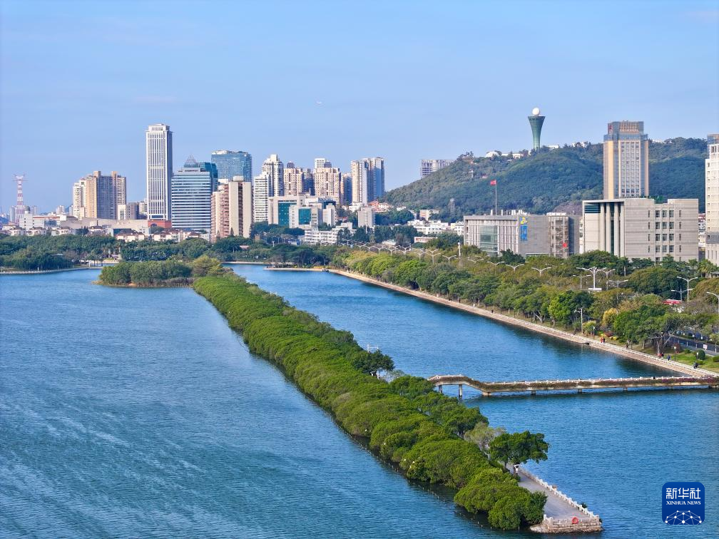這是1月24日拍攝的廈門筼筜湖紅樹林種植帶(無人機照片)。新華社記者 姜克紅 攝
