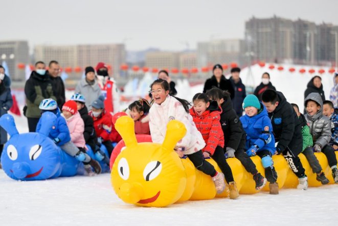 2月1日,小朋友在呼和浩特市東河冰場(chǎng)參與冰雪親子趣味運(yùn)動(dòng)會(huì)。新華社記者 李志鵬 攝