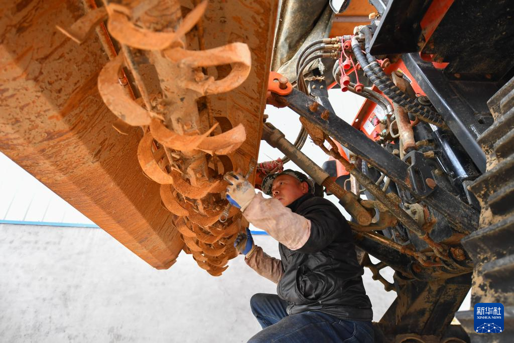 2月25日,在湖南省益陽市赫山區(qū)農田謀士水稻專業(yè)合作社,工作人員在檢修農機。