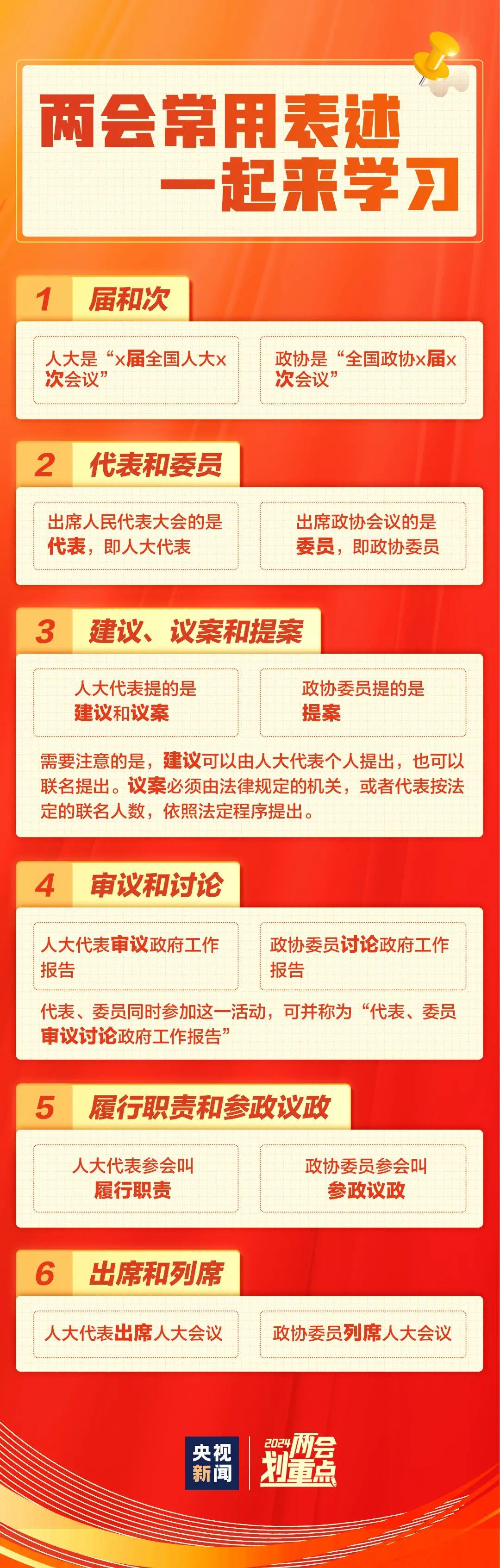 2024年全國(guó)兩會(huì)越來(lái)越近。關(guān)于全國(guó)兩會(huì),你了解多少?今天,央視新聞為你準(zhǔn)備了一份全面的科普。看圖,花上幾分鐘,一起學(xué)習(xí)關(guān)于兩會(huì)的知識(shí)。