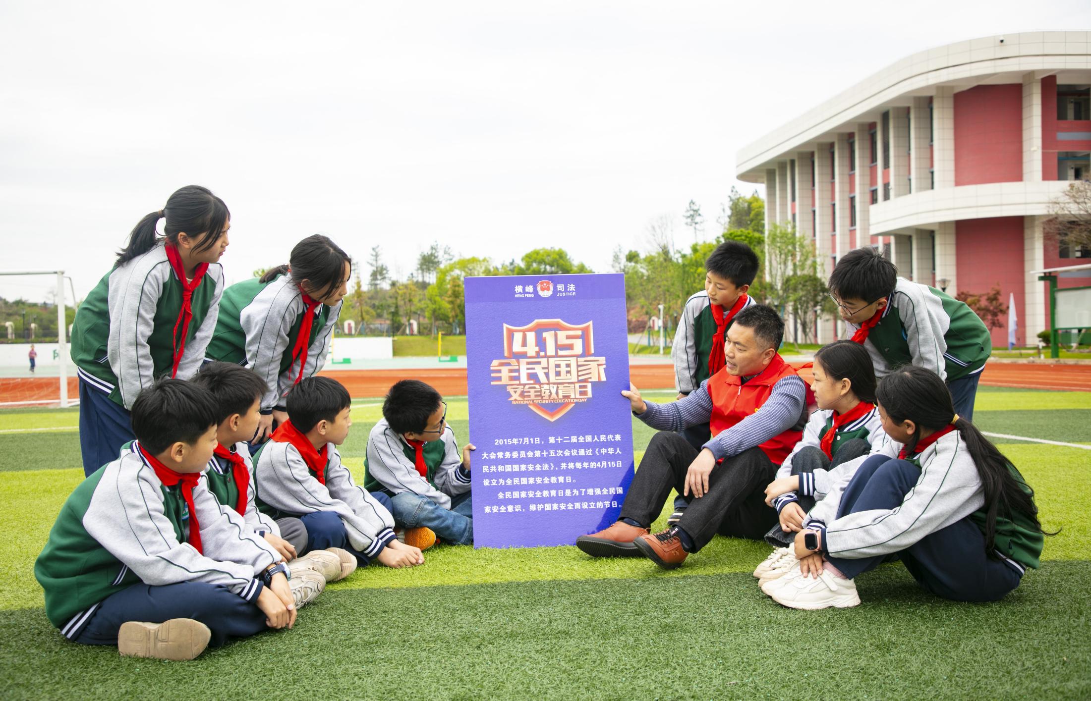 在第九個(gè)全民國(guó)家安全教育日到來(lái)之際,江西省上饒市橫峰縣司法局組織平安志愿者前往轄區(qū)校園開(kāi)展國(guó)家安全教育知識(shí)宣講,不斷增強(qiáng)青少年的國(guó)家安全意識(shí)和法治意識(shí),共筑國(guó)家安全防線。圖為4月10日,平安志愿者在橫峰縣第三小學(xué)為同學(xué)們講解國(guó)家安全知識(shí)。