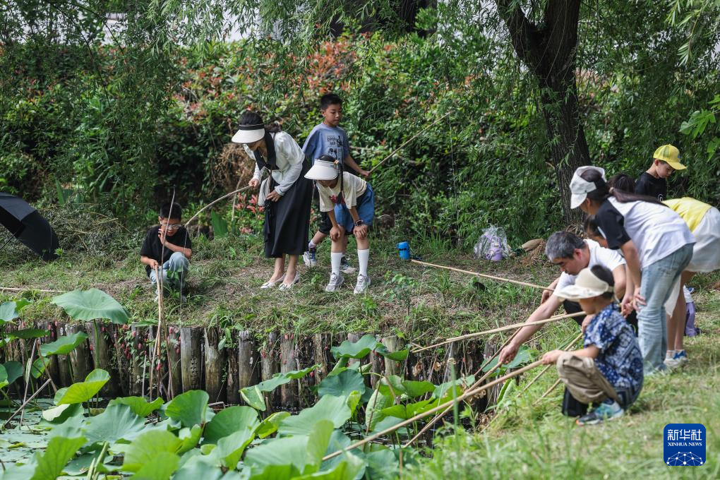 5月25日,在東林鎮(zhèn)泉益村活動現(xiàn)場,孩子們在父母的帶領下釣小龍蝦。