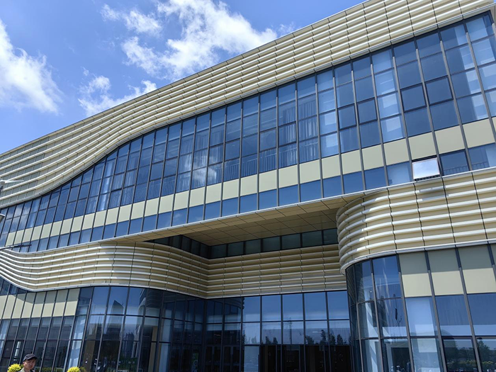 “這面光伏幕墻年發(fā)電量在11萬(wàn)度左右,相當(dāng)于100戶家庭的年耗電總量。”江蘇省射陽(yáng)港經(jīng)濟(jì)開發(fā)區(qū)黨工委書記陳雙喜介紹。