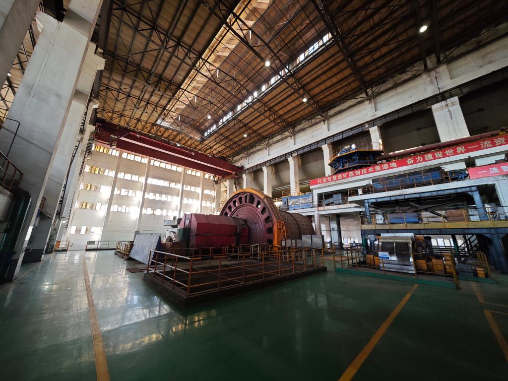 6月15日,關(guān)寶山礦山磨磁黑燈工廠里正在運(yùn)轉(zhuǎn)的球磨機(jī)。新華社記者李鋼 攝