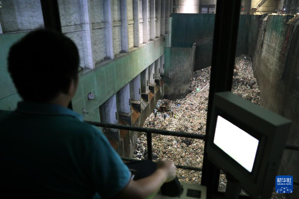 此時(shí),類似抓娃娃機(jī)爪子的巨大垃圾吊,正將約8噸重的生活垃圾抓起并投入爐膛溫度高達(dá)上千攝氏度的焚燒爐。