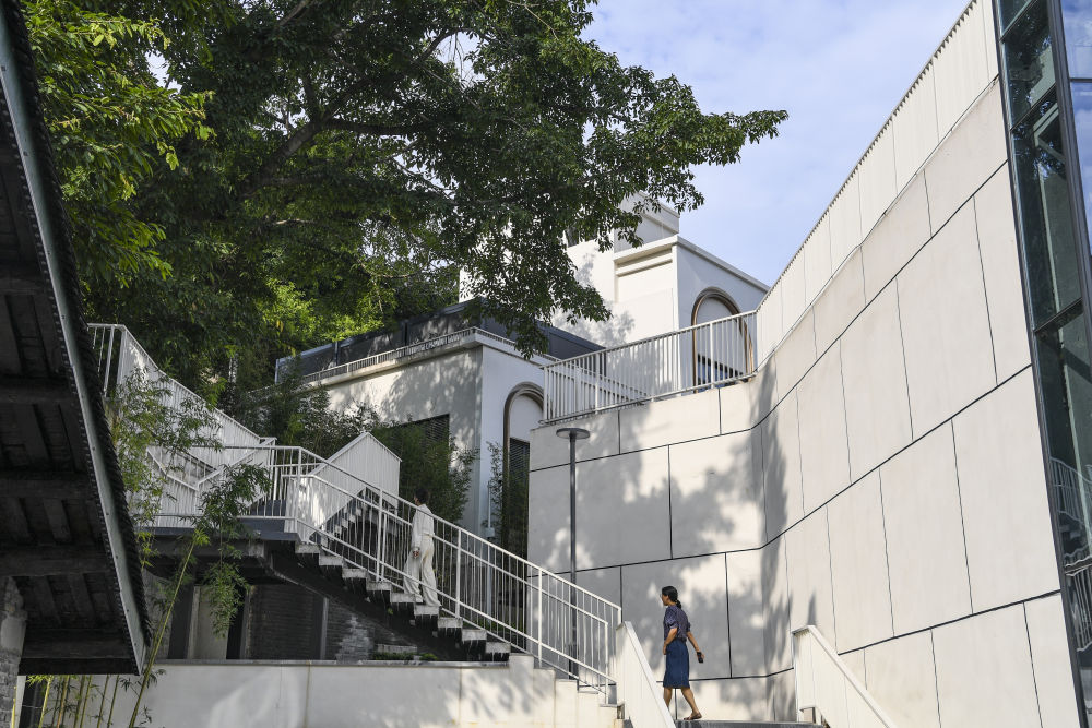 ↑7月15日,游客在重慶市江北區(qū)洋炮局1862文創(chuàng)園游覽。