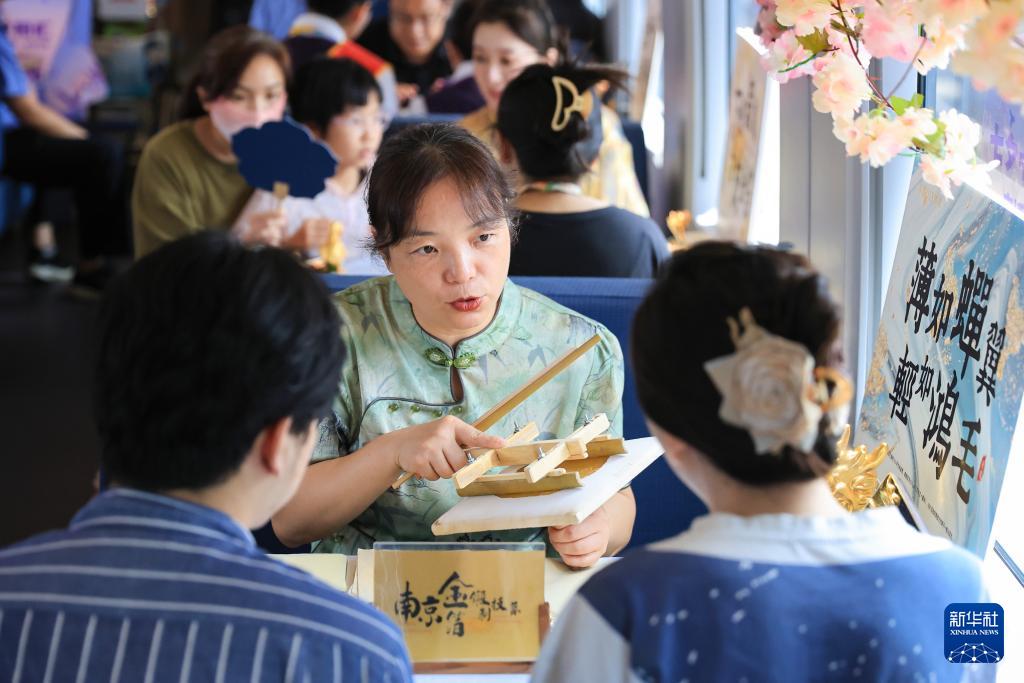 當(dāng)日,中國鐵路上海局集團有限公司南京客運段在G7393次和G132次高鐵列車上開展“七夕寧相匯 文博敘匠心”主題活動?;顒又?,來自南京多家文博場館的工作人員進行傳統(tǒng)手工藝展示,并邀請旅客互動體驗,讓旅客在旅途中感受傳統(tǒng)文化的魅力,迎接七夕節(jié)的到來。