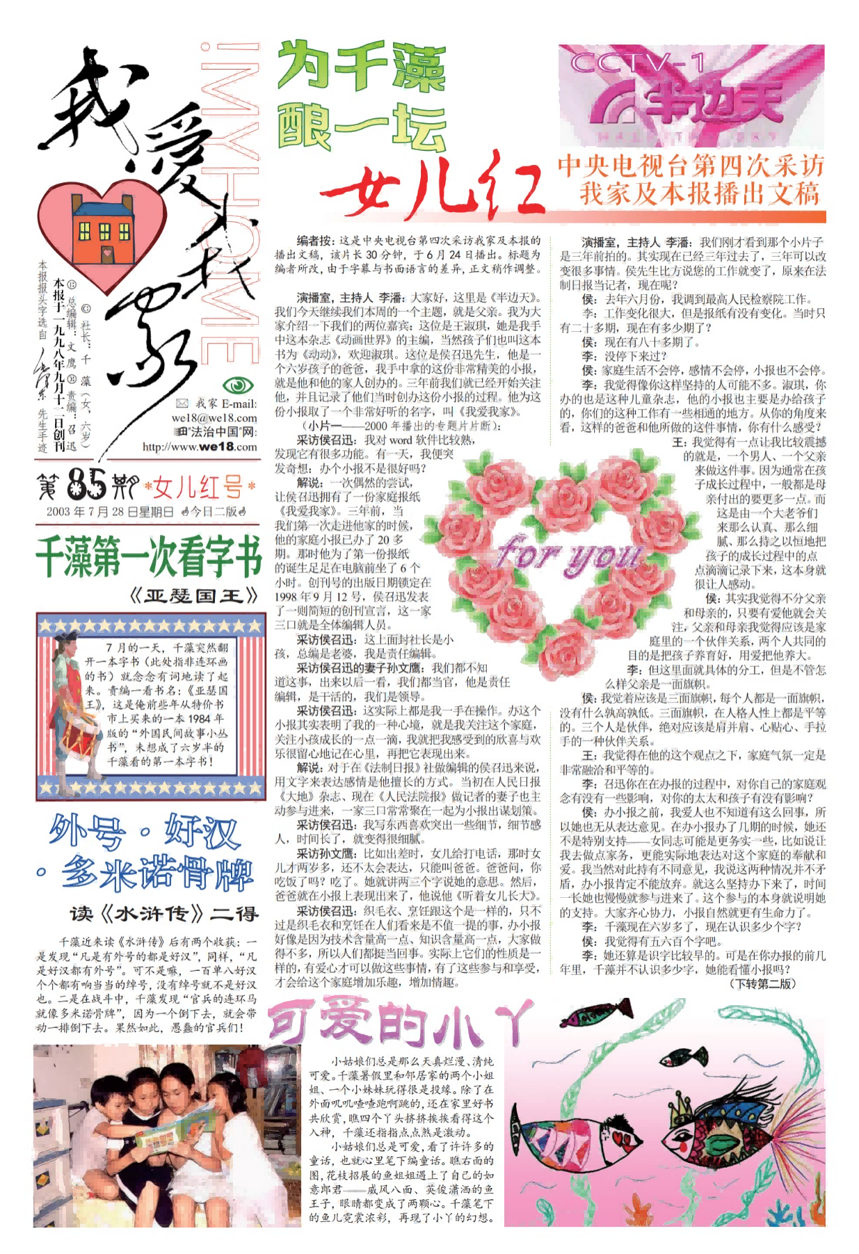 1998年9月創(chuàng)辦家庭小報《我愛我家》,用WORD精心制作,版面復(fù)雜程度堪比當時一些彩報。當時頗受歡迎的《電腦愛好者》雜志約我寫了文章《我用WORD辦小報》,刊于1998年第22期。微軟公司聯(lián)系我,要我做OFFICE特別是WORD的推廣使者,我顧慮再三予以謝絕。上網(wǎng)后,辦小報所需信息、圖片等更加易得,生產(chǎn)效率大為提高,一月一期變成數(shù)期,一版也常常變成數(shù)版。《中國青年》2000年第11期(半月刊)作了6000余字報道《辦份報紙給我愛的人》。《北京青年報》2000年11月2日作報道《侯召迅的<我愛我家>》?!稌r尚·健康》雜志于2003年第3期作圖文報道《溫情生活秀》。中央電視臺2000年10月4日在CCTV-1“半邊天”、 2001年9月14日在CCTV-10 “講述”、 2003年6月24日在CCTV-1“半邊天”欄目做過三次專題片,時長分別是9分鐘、20分鐘、30分鐘,2002年2月19日在“半邊天”春節(jié)特別節(jié)目作現(xiàn)場采訪?!侗本┏繄蟆贰斗ㄖ菩侣劷纭贰吨袊倌陥蟆返让襟w亦作報道。小報一直辦到百余期,一度搬到“法治中國”個人網(wǎng)站。
