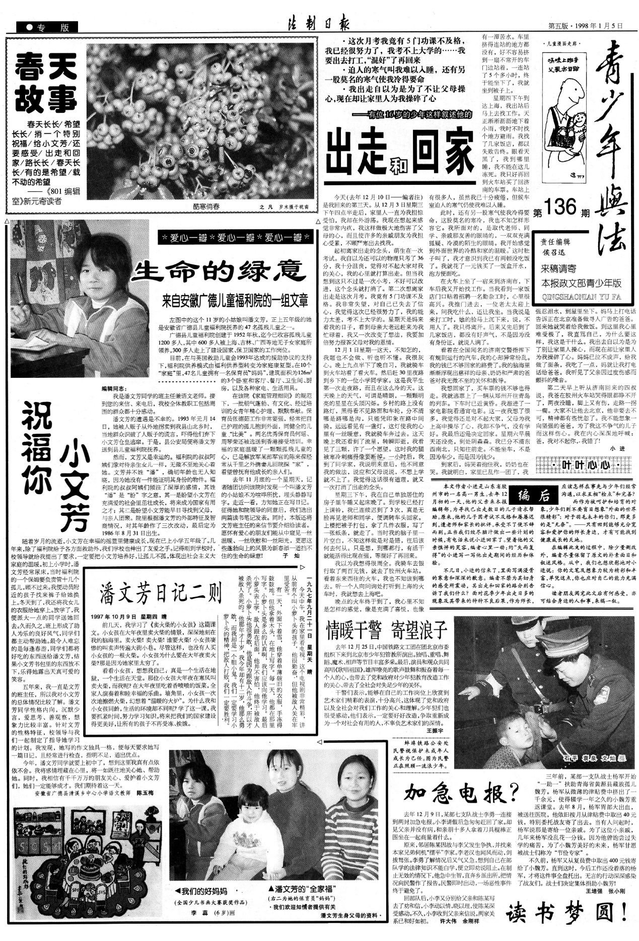 1998年1月5日,“青少年與法”第136期專題報(bào)道了潘文芳的故事,不久有了后續(xù)故事《幫文芳找到家》。