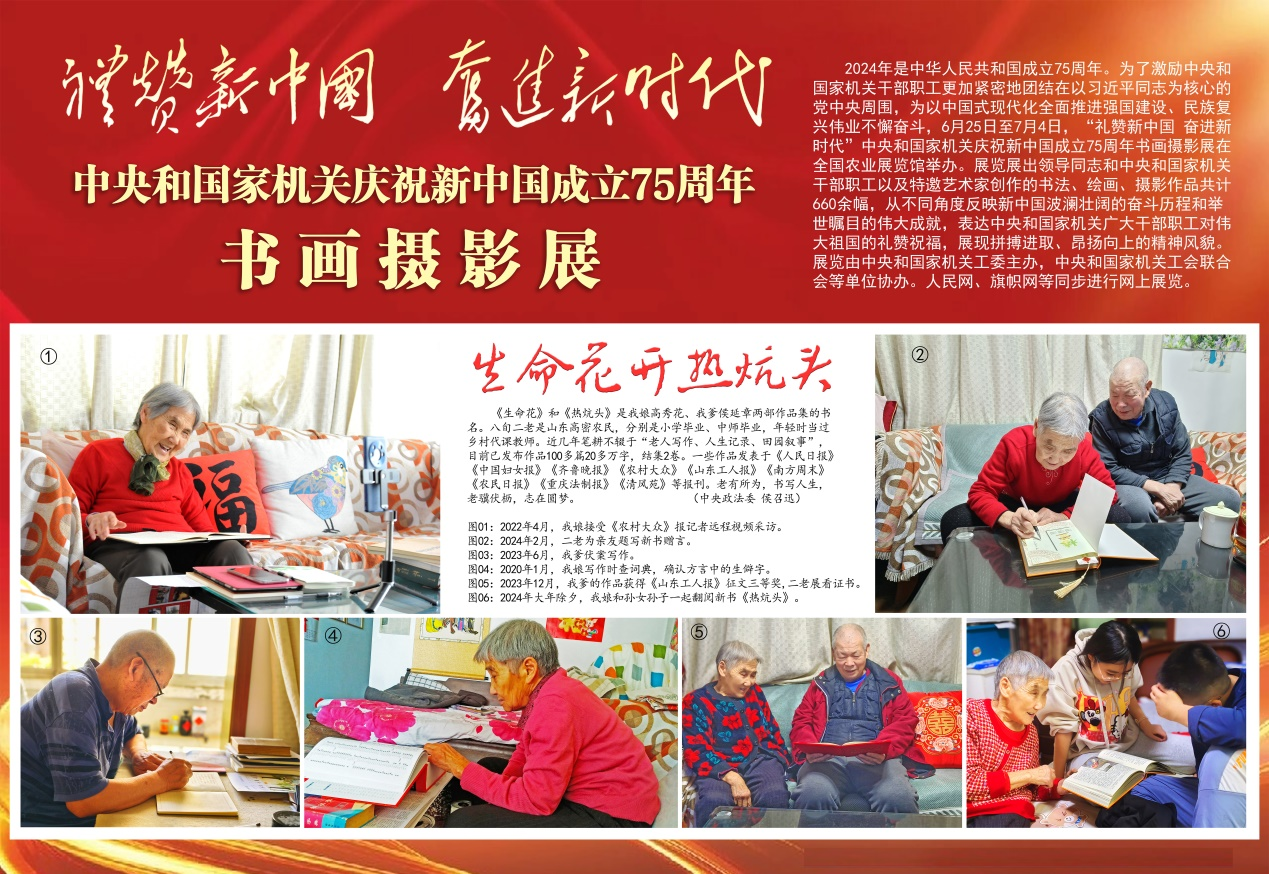 2024年6月,我拍攝父母學(xué)習(xí)、寫作的一組照片,參加中央和國家機(jī)關(guān)慶祝新中國成立75周年書畫攝影展。