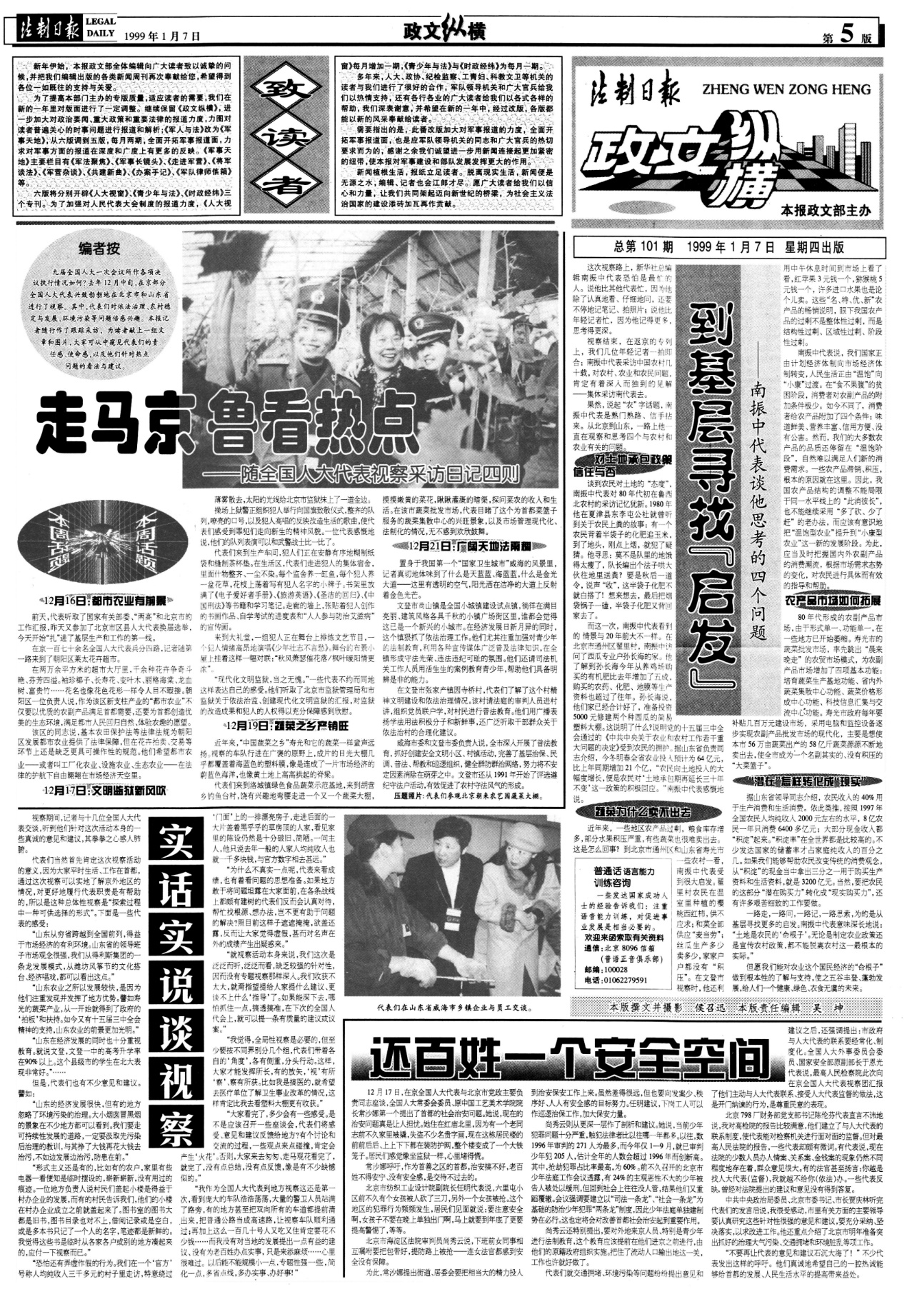 1999年1月7日,《法制日報》刊發(fā)《實話實說談視察》等一組專題報道。