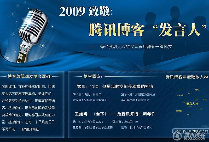 2009年12月,騰訊博客“發(fā)言人”推薦頁面。