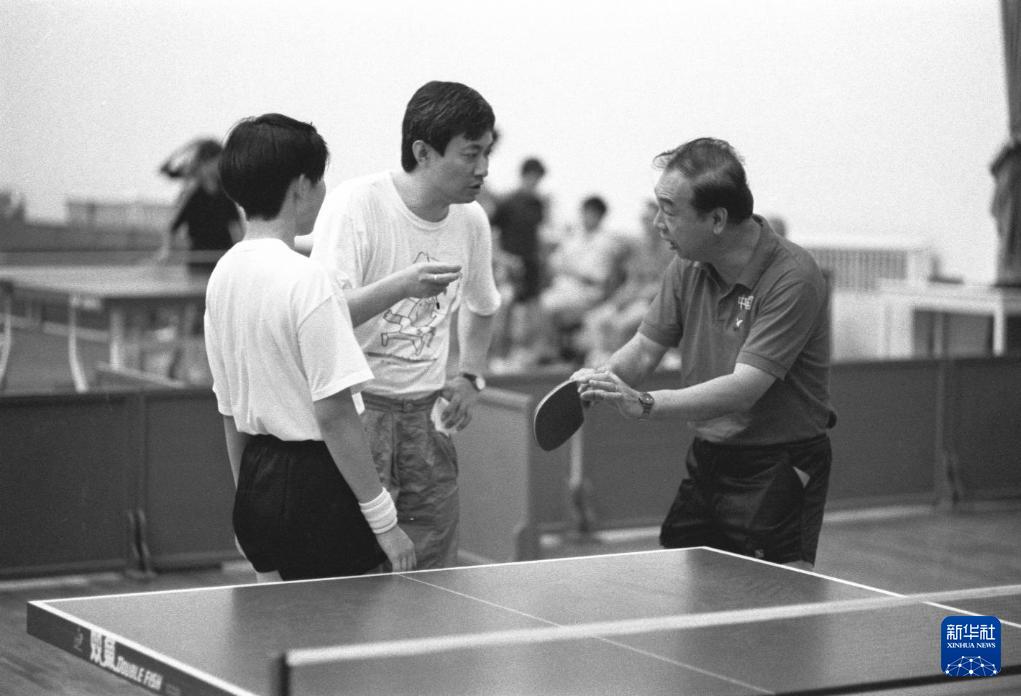 這是張燮林(右)在河北省正定乒乓球訓(xùn)練基地指導(dǎo)隊員訓(xùn)練(資料照片)。新華社記者 張小軍 攝