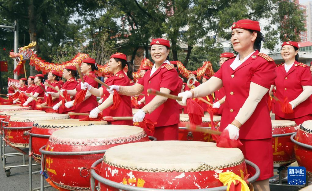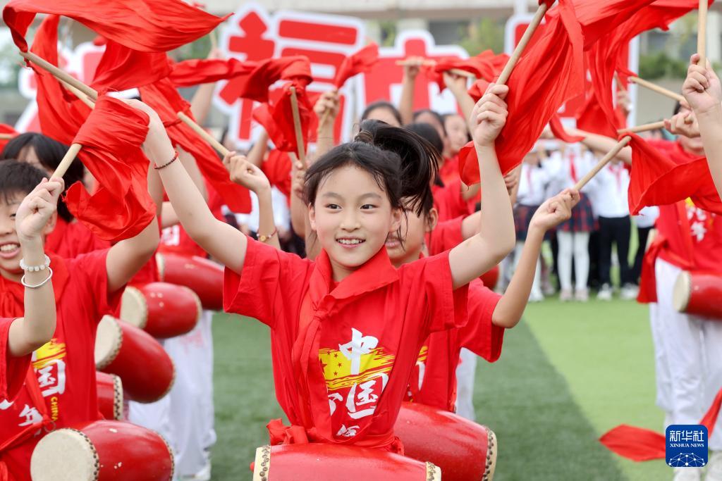 9月27日,浙江省湖州市德清縣上柏小學(xué)學(xué)生在“童心向黨 祝福祖國(guó)”主題活動(dòng)中表演節(jié)目《中國(guó)范》腰鼓頌。
