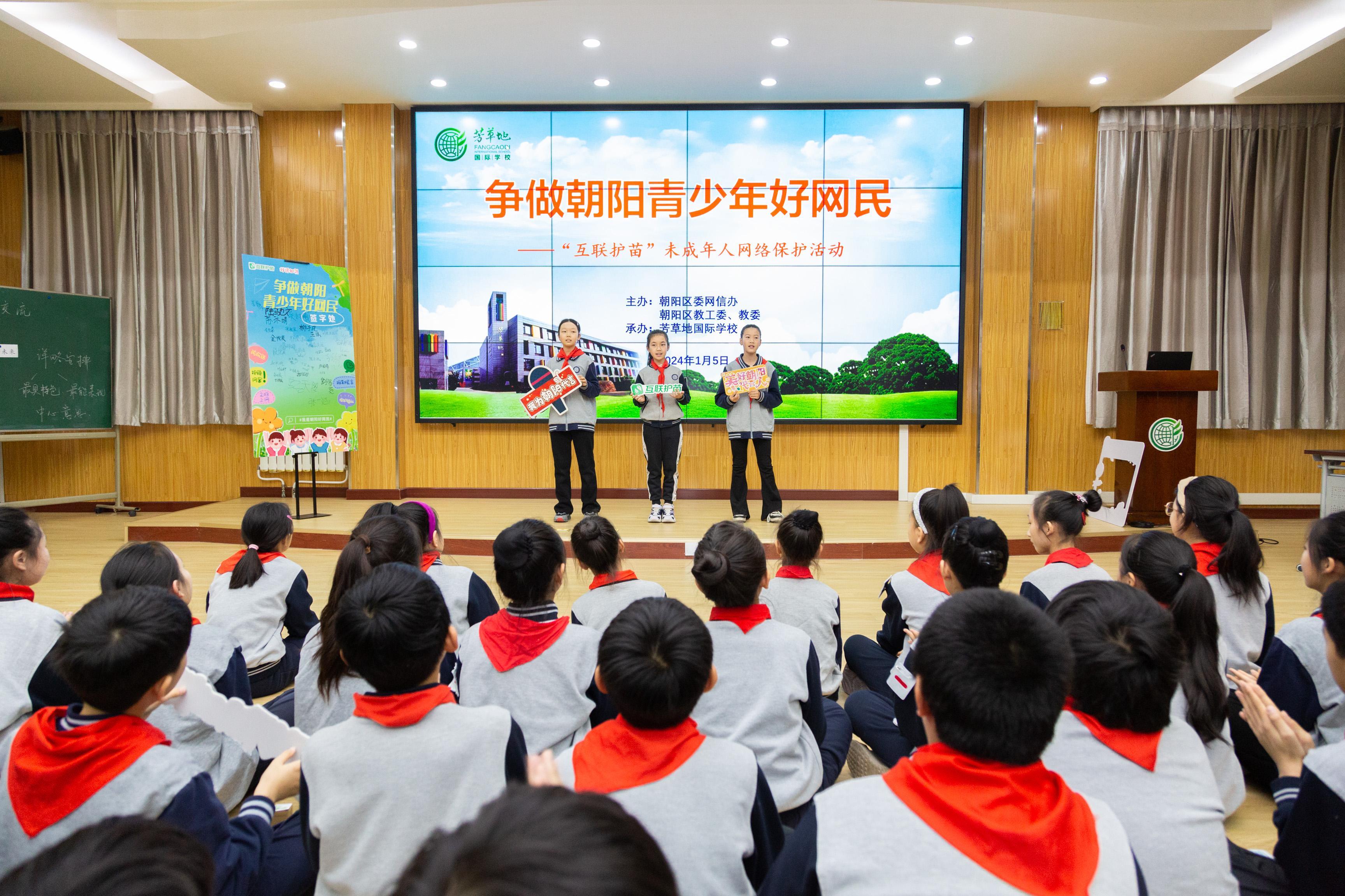 1月5日,北京市朝陽區(qū)委網(wǎng)信辦聯(lián)合朝陽區(qū)教工委、教委走進芳草地國際學(xué)校舉辦“爭做朝陽青少年好網(wǎng)民——‘互聯(lián)護苗’未成年人網(wǎng)絡(luò)保護”主題活動。