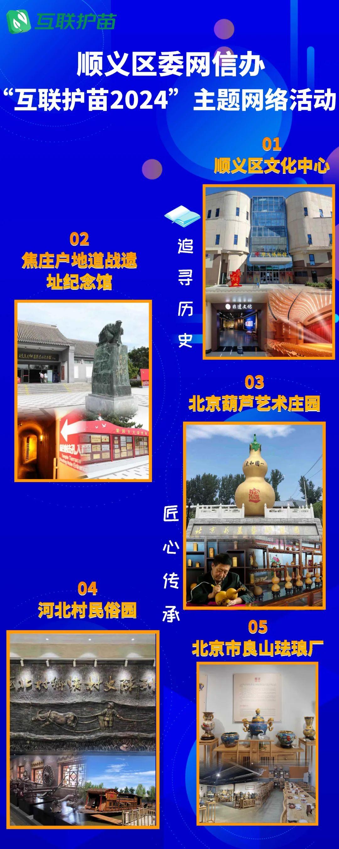 聯(lián)合區(qū)文旅局推出“追尋歷史,匠心傳承”研學(xué)路線(納入市級(jí)6條推廣線路之一),設(shè)置順義區(qū)文化中心、焦莊戶地道戰(zhàn)遺址紀(jì)念館、北京葫蘆藝術(shù)莊園、河北村民俗園、北京市良山琺瑯廠,共五個(gè)點(diǎn)位,學(xué)生可通過現(xiàn)場打卡、游歷體驗(yàn)等開展非遺、愛國主義教育等社會(huì)實(shí)踐活動(dòng),并已通過高德、百度、美團(tuán)進(jìn)行線上發(fā)布。