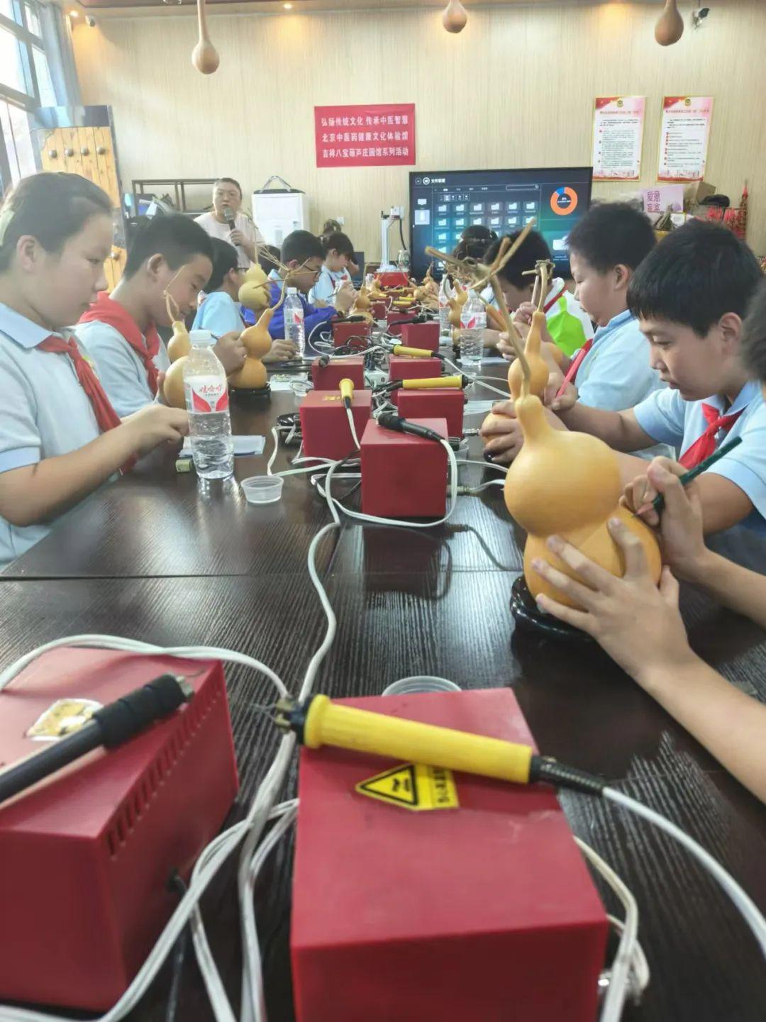 在龍灣屯葫蘆牛大師工作室,同學(xué)們跟隨非遺手工匠人一起體驗市級非物質(zhì)文化遺產(chǎn)“火繪葫蘆”技藝,制作專屬的火繪葫蘆,深入感受中華葫蘆文化的傳承與發(fā)展。