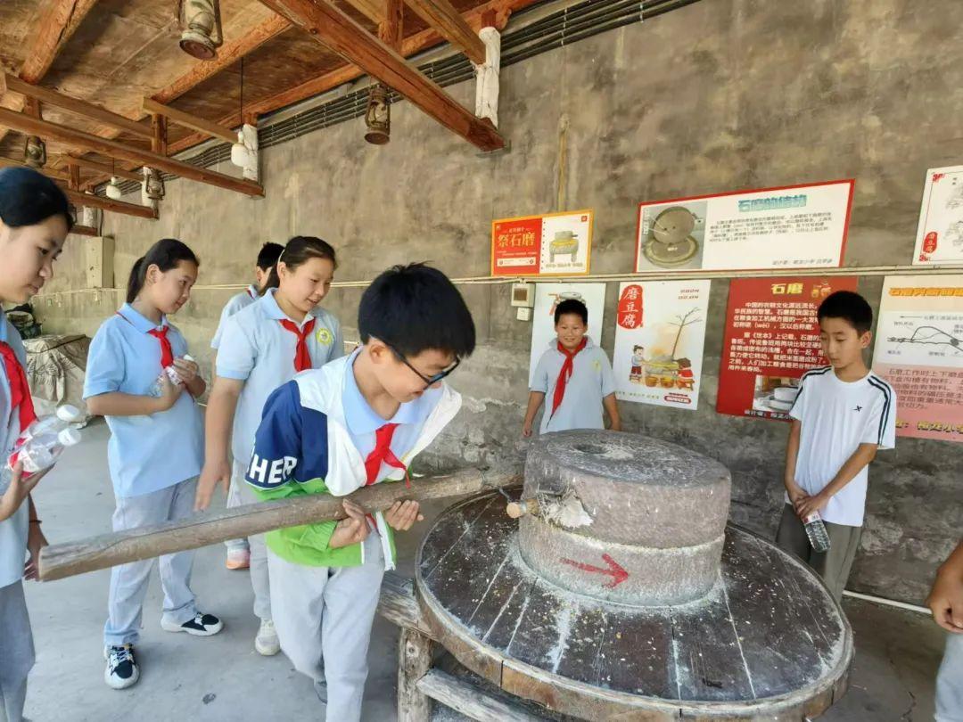 在南彩鎮(zhèn)河北村民俗園,同學(xué)們通過參觀鄉(xiāng)情村史陳列室、紅船、黨建長廊,了解石磨結(jié)構(gòu)和工作原理并體驗手工制作小農(nóng)具,沉浸式感受“傳承民俗文化、弘揚民族精神”的理念。