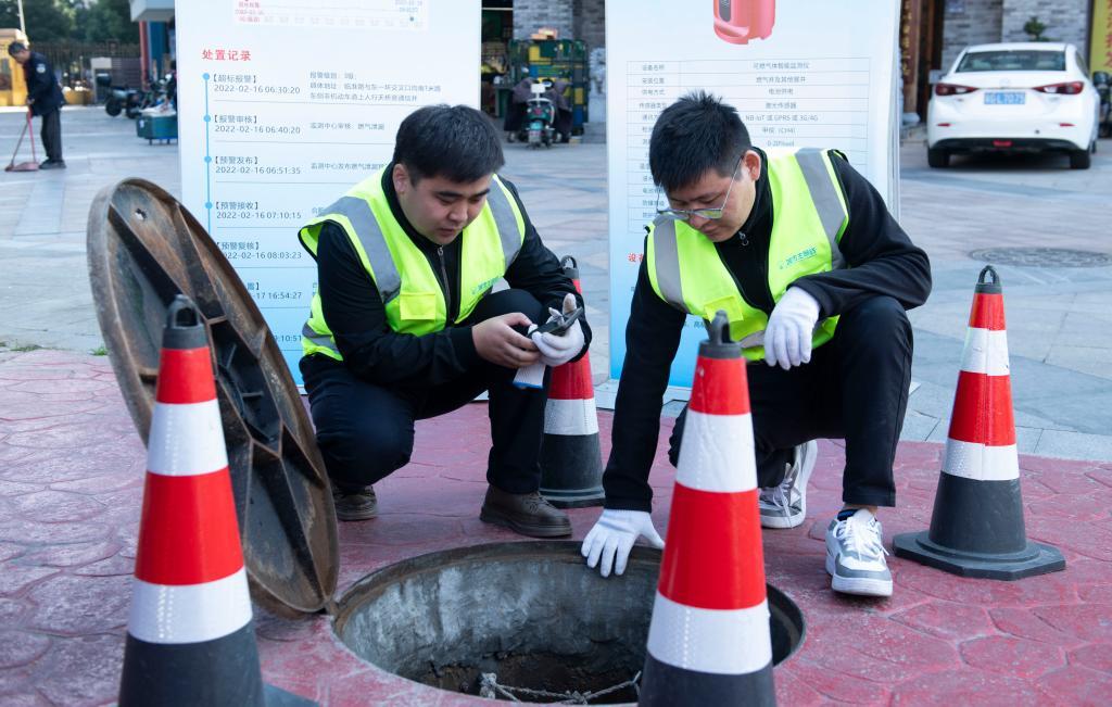 11月7日,運(yùn)維人員在檢查井內(nèi)的可燃?xì)怏w監(jiān)測儀。新華社記者 傅天 攝