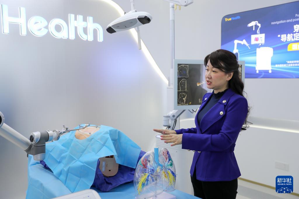 11月24日,在橫琴澳門青年創(chuàng)業(yè)谷,真健康公司創(chuàng)始人、澳門青年張昊任介紹產(chǎn)品“穿刺手術(shù)導(dǎo)航定位系統(tǒng)”。新華社記者 王益亮 攝