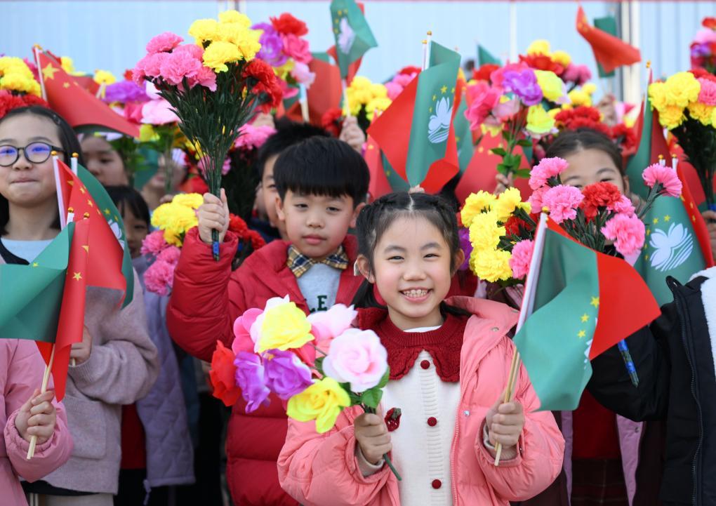 12月18日下午,中共中央總書記、國家主席、中央軍委主席習(xí)近平乘專機(jī)抵達(dá)澳門,出席將于20日舉行的慶祝澳門回歸祖國25周年大會暨澳門特別行政區(qū)第六屆政府就職典禮,并視察澳門。這是歡迎人群。新華社記者 謝環(huán)馳 攝