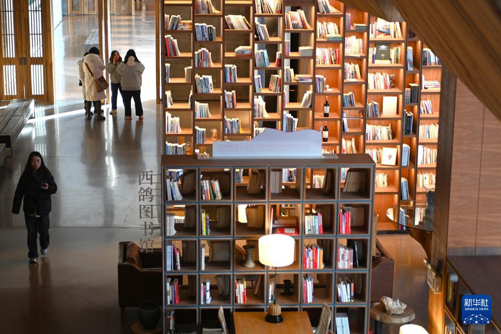 11月27日,游客在位于寧夏青銅峽市的西鴿酒莊圖書館參觀。