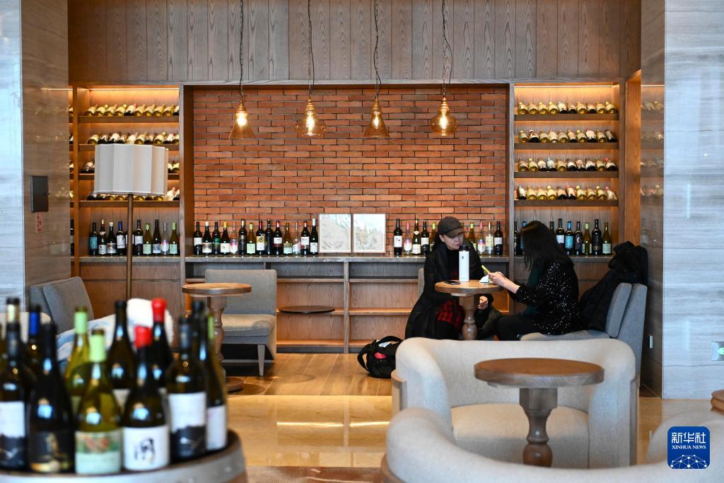 12月24日,游客在位于寧夏銀川市的圖蘭朵葡萄酒小鎮(zhèn)參觀葡萄酒廊。
