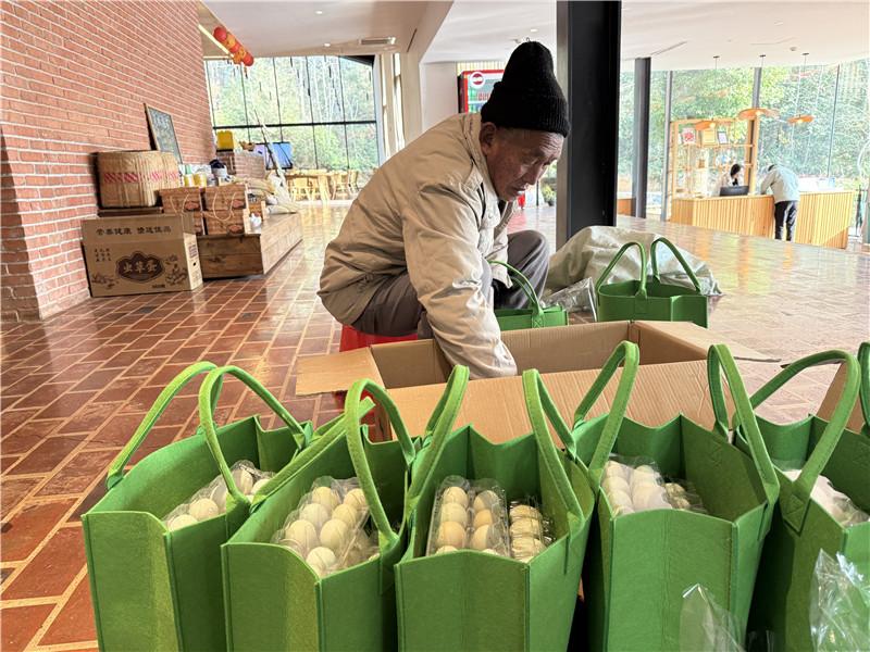 村民正在打包農(nóng)產(chǎn)品禮包。人民網(wǎng)記者 張雋攝