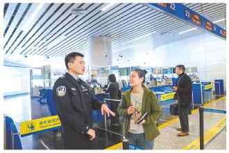 “稍等稍等,警官過(guò)年好,我找一下護(hù)照?!彬?yàn)證臺(tái)前,從美國(guó)來(lái)的旅客杜先生拎著大包小包的行李,手忙腳亂地翻找著。