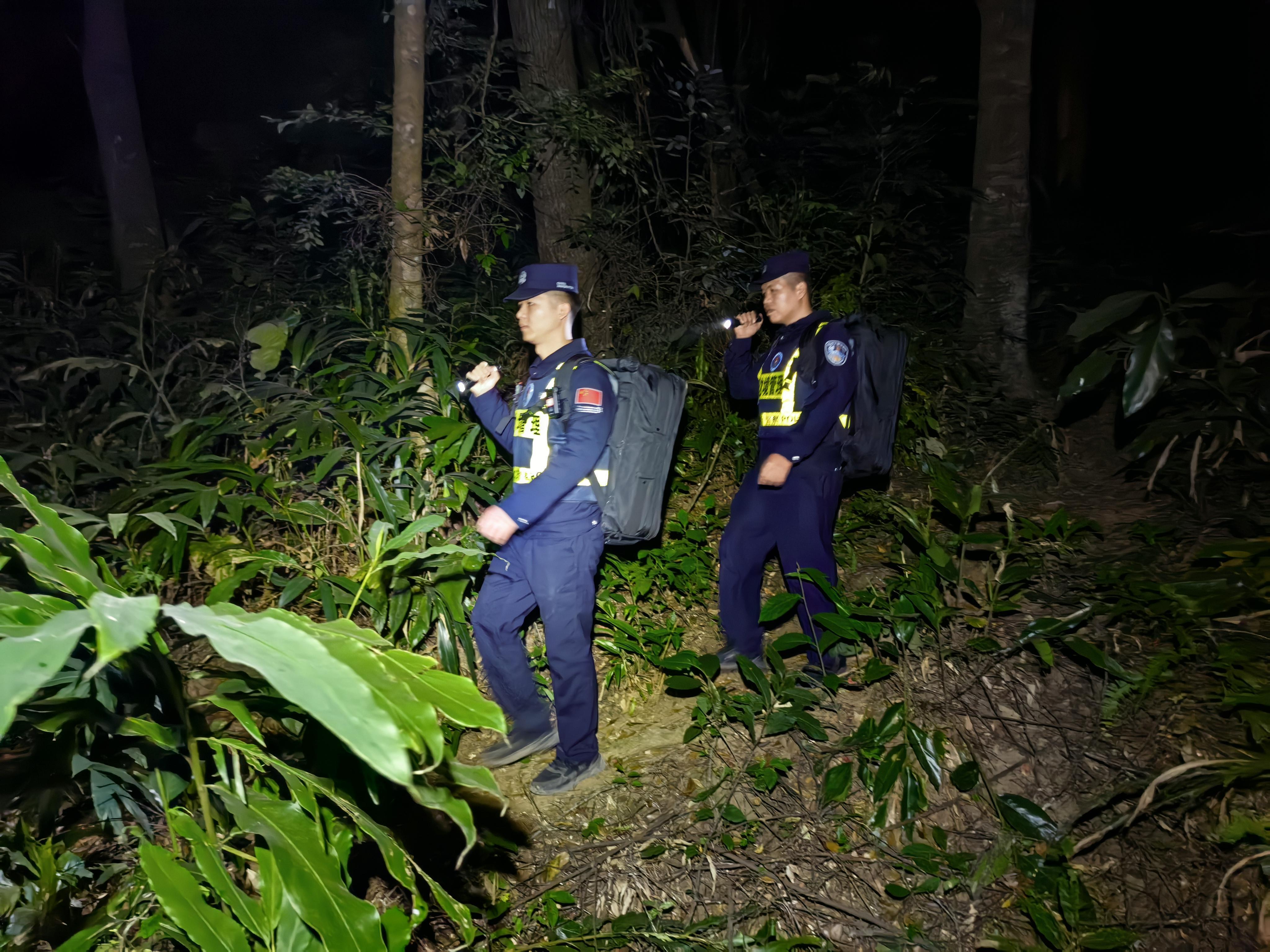 去年12月11日深夜,大青山警務(wù)室獲悉一條重要工作信息,一伙偷渡分子企圖從大青山附近偷渡出境。傅彬和同事莫璧成立即在重要路段設(shè)卡攔截,雖然發(fā)現(xiàn)目標(biāo)車輛但車內(nèi)并無(wú)其他人員。民警根據(jù)工作經(jīng)驗(yàn)判斷,該車可能已讓可疑人員下車離開。隨即,莫璧成立即聯(lián)系護(hù)邊員、網(wǎng)格員等群眾力量對(duì)附近區(qū)域進(jìn)行搜索。