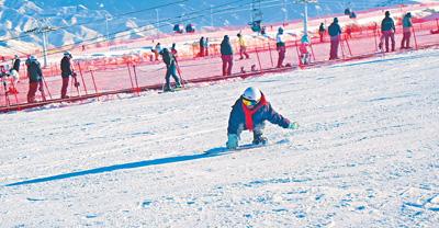 新疆阜康市天山天池國際滑雪場,雪友在體驗(yàn)滑雪樂趣。