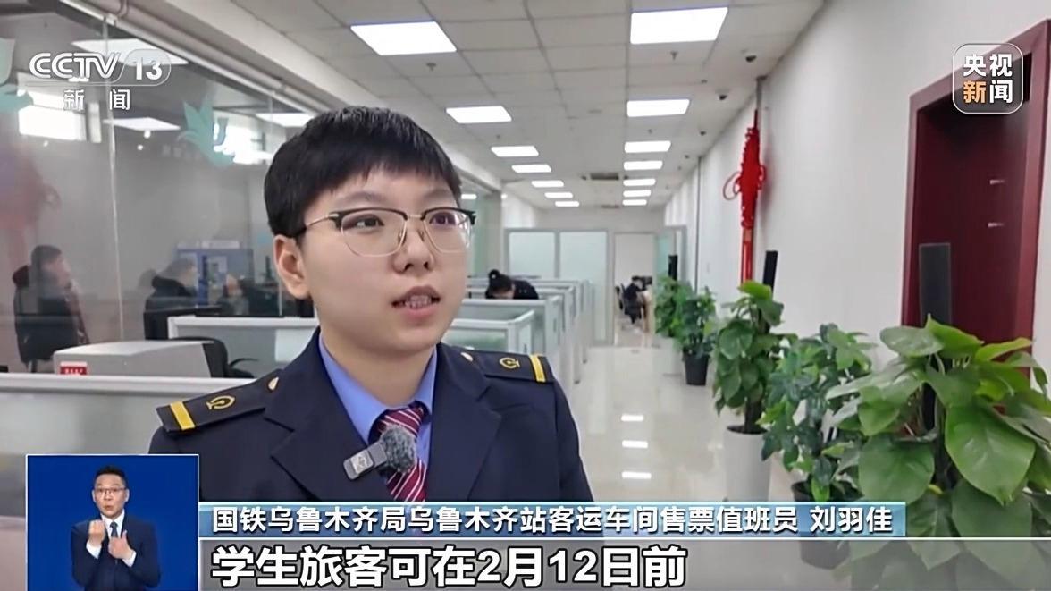 國鐵烏魯木齊局烏魯木齊站客運車間售票值班員 劉羽佳:學(xué)生旅客可在2月12日前,預(yù)約購買2月28日(前)的火車票,家庭居住地與學(xué)校所在地不在同一城市,已通過學(xué)生優(yōu)惠資質(zhì)核驗,且有剩余優(yōu)惠次數(shù)的學(xué)生,都可以在學(xué)生購票專區(qū)購票。