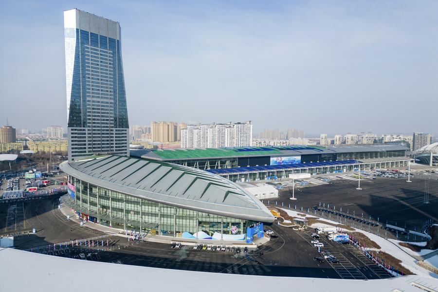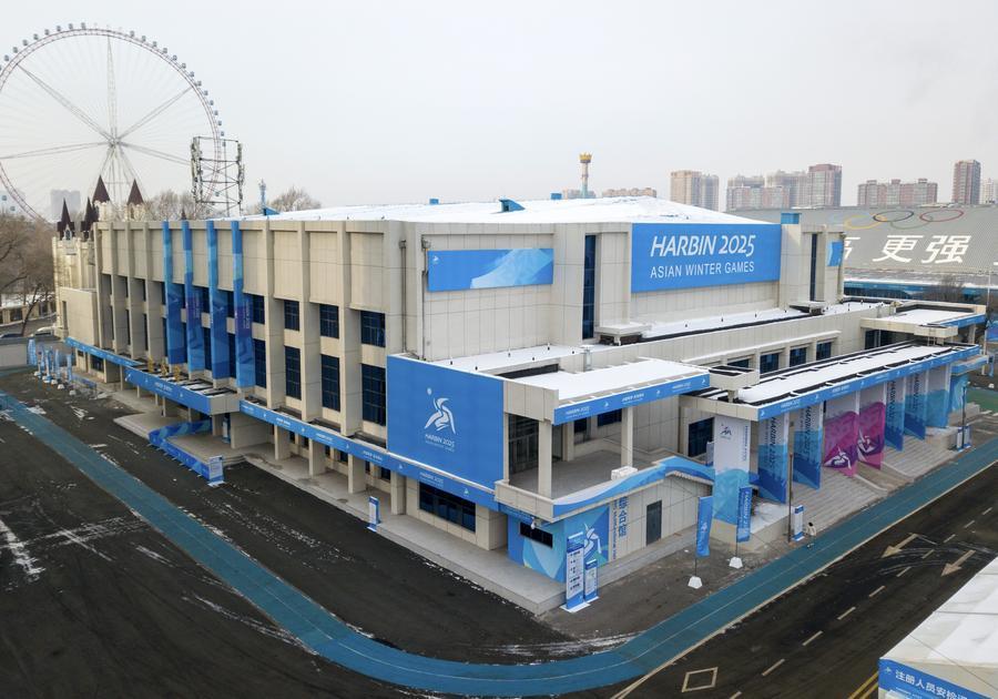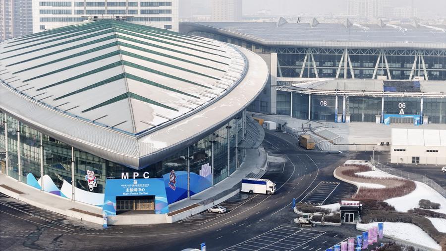 這是1月21日拍攝的哈爾濱2025年第九屆亞冬會(huì)主新聞中心(無(wú)人機(jī)照片)。新華社記者 王松 攝